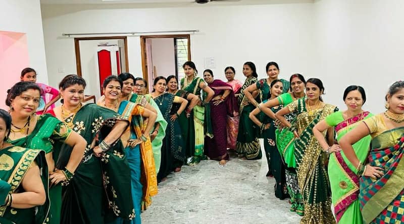 पहला सावन मिलन समारोह में आकर्षक ग्रीन वेशभूषा में नजर आईं महिलाएं…….