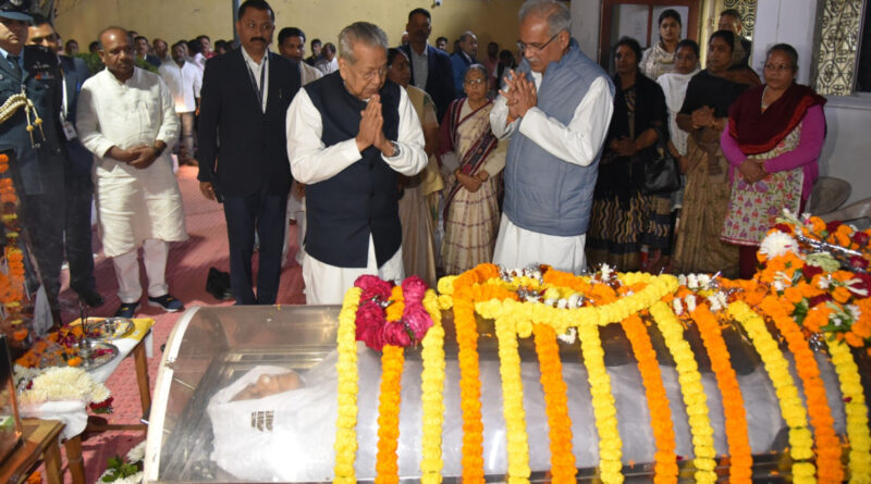 Uncategorized छत्तीसगढ़ लेटेस्ट अपडेट CG BREAKING: राज्यपाल श्री हरिचंदन ने स्वर्गीय श्री नंदकुमार बघेल को पुष्पांजलि अर्पित की January 8, 2024 Shivnath Samvad 0 Comments Raipur: राज्यपाल श्री विश्वभूषण हरिचंदन ने आज पूर्व मुख्यमंत्री श्री भूपेश बघेल के शांति नगर स्थित निवास पहुंच कर उनके पिता स्वर्गीय श्री नंदकुमार बघेल को पुष्पांजलि अर्पित की और गहरी संवेदना व्यक्त की।
