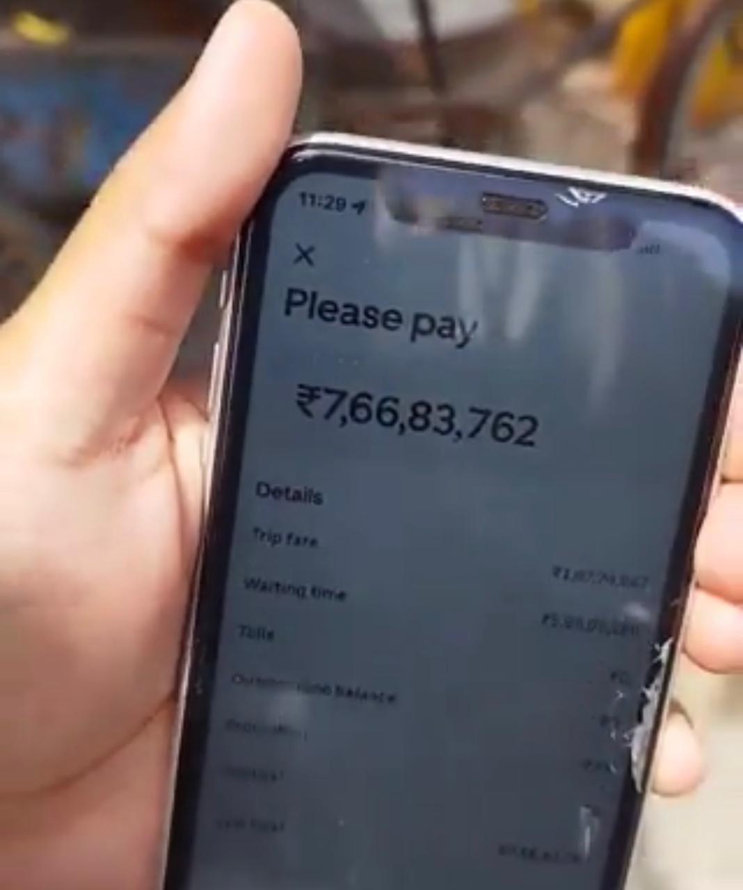 आशीष मिश्रा नाम के युवक ने शुक्रवार को एक्स (पूर्व में ट्विटर) पर एक वीडियो क्लिप शेयर की। यह घटना आशीष के दोस्त दीपक के साथ हुई है। वीडियो में दोनों को दीपक को मिले भारी बिल के बारे में चर्चा करते हुए सुना जा सकता है। क्लिप में दीपक उबर बिल में दिखाई दे रही करोड़ों की राशि दिखा रहे हैं। जब आशीष ने उनसे पूछा, “आपका बिल कितना है, दिखाओ”, दीपक ने कहा, “7,66,83,762 रुपये।”