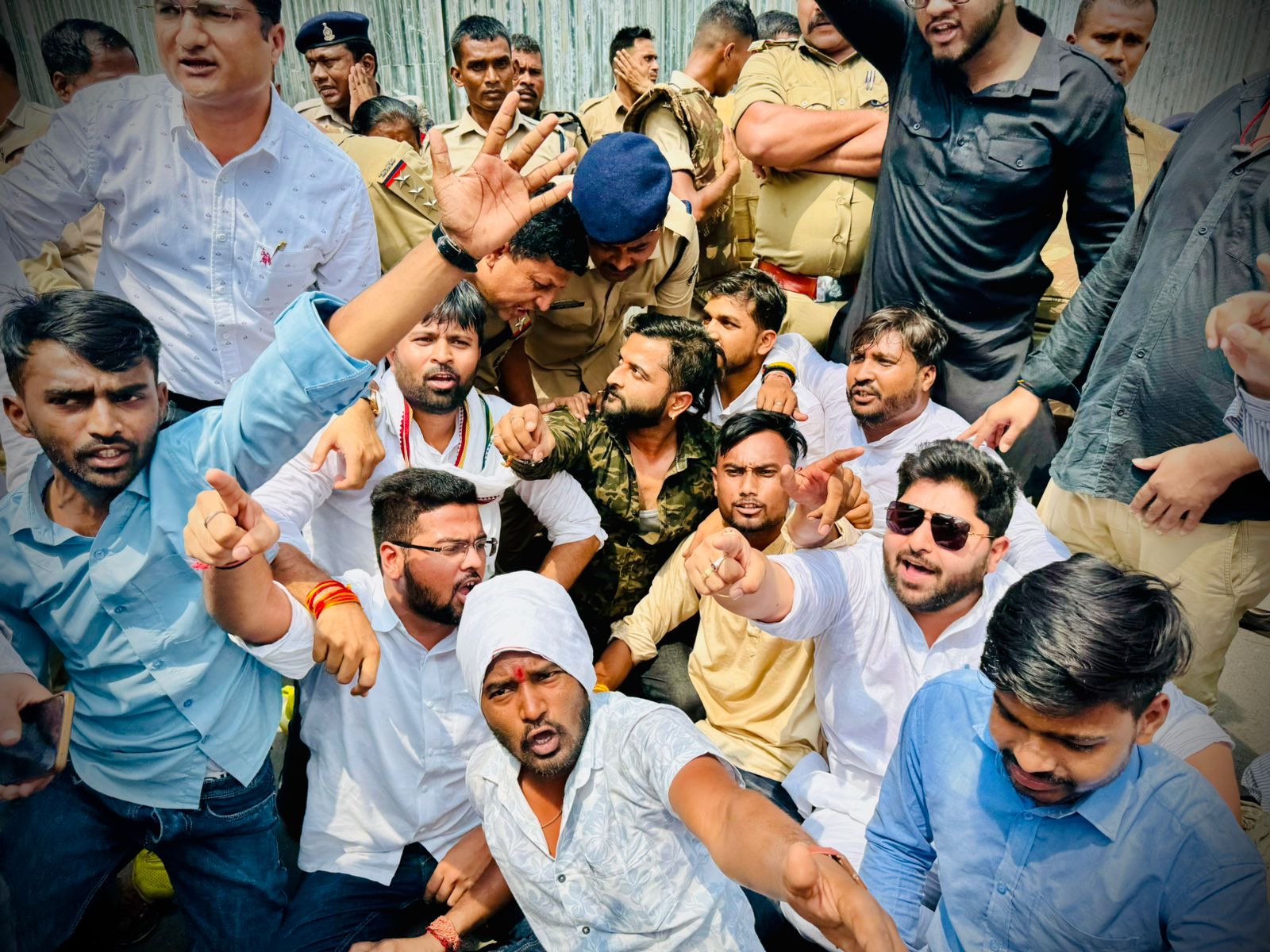 दुर्ग जिला युवा कांग्रेस के सैकड़ो कार्यकर्ता प्रदेश अध्यक्ष आकाश शर्मा के नेतृत्व में गृह मंत्री विजय शर्मा का आवास घेरने पहुचे। बलौदा बाजार में हुई घटना के विरोध में तथा प्रदेश में भाजपा सरकार के लचर कानून व्यवस्था के विरोध में आज युवा कांग्रेस ने विजय शर्मा के बंगले का घेराव किया पुलिस प्रशासन की भारी भरकम इंतजाम कर बड़े-बड़े बैरी गेटिंग लगाकर व फायर ब्रिगेड की गाड़ियों सहित इंतजाम कर रखा था,लेकिन युवा कांग्रेसियों के हौसले बुलंद थे व पुलिस के साथ झूम झटकी भी हुई। कार्यक्रम में दुर्ग युवा कांग्रेस से प्रदेश महासचिव संदीप वोरा, प्रदेश सचिव अनुप वर्मा, शशांक (सन्नी) साहू, जिला अध्यक्ष आयुष शर्मा प्रभारी गौरव उमरे, पृथ्वी चंद्राकर, चिराग शर्मा, वरुण,रमीज़ राजा, विनोद कुमार, वरुण केवलतानी, शाश्वत पाण्डे, सोनू शर्मा, कौशल सिंह, विक्की राजा,अमोल जैन, तानिष पाटनी सहित सैकड़ों की संख्या में पहुचे।