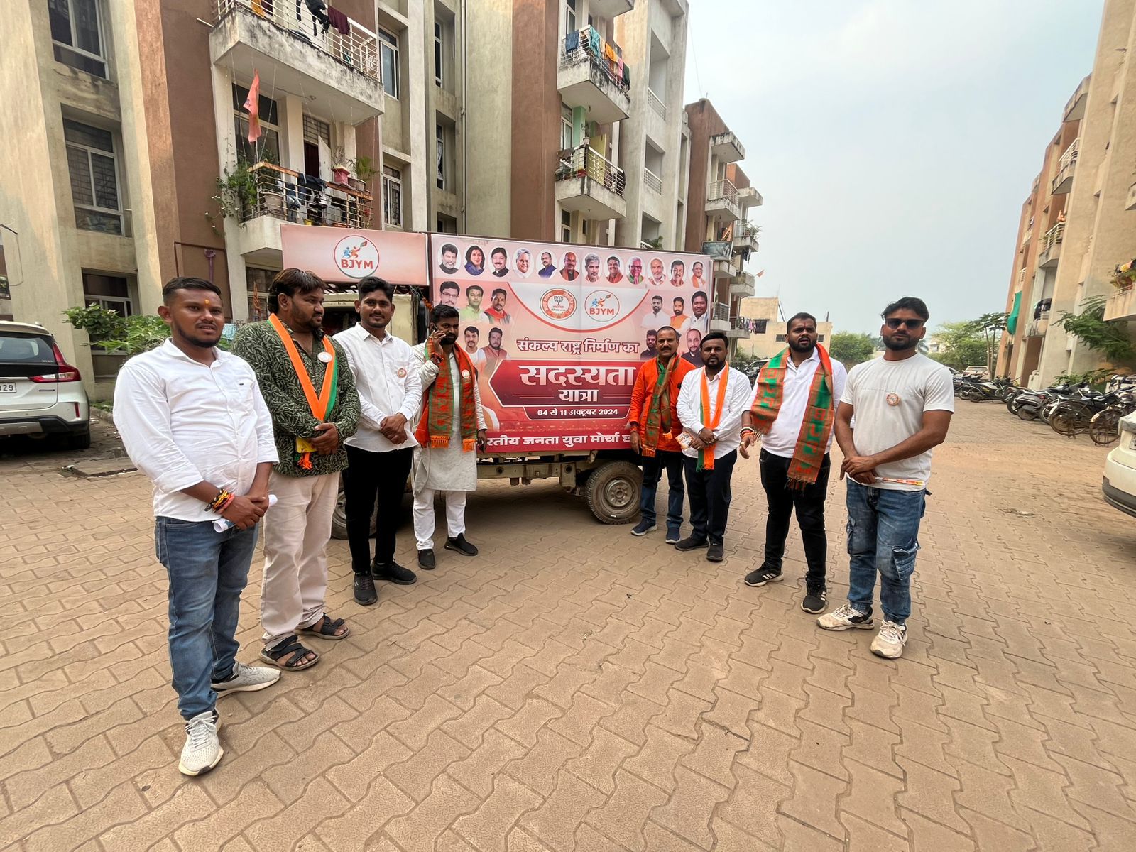 दिनांक – 7 अक्टूबर 2024 को भारतीय जनता युवा मोर्चा की सदस्यता रथ यात्रा पाटन विधानसभा के उत्तर पाटन मण्डल के अम्लेश्वर नगर बजार चौक से शुरू होते तिरंगा चौक, ग्रीनअर्थ सिटी, अम्लेश्वर, डीह कोपेडीह सहित नगर भ्रमण करते हुए सदस्यता अभियान चलाया गया व ग्राम झिट में समापन किया गया। इस सदस्यता महाअभियान में युवा साथियों ने भाजपा का सदस्यता ग्रहण कर गौरवान्वित महसूस किया।