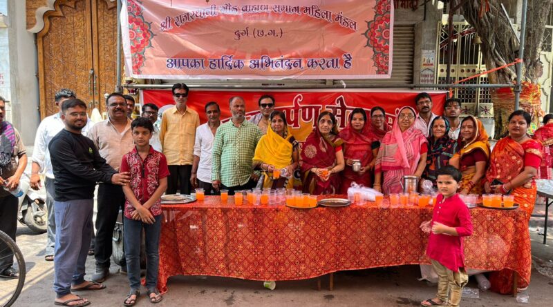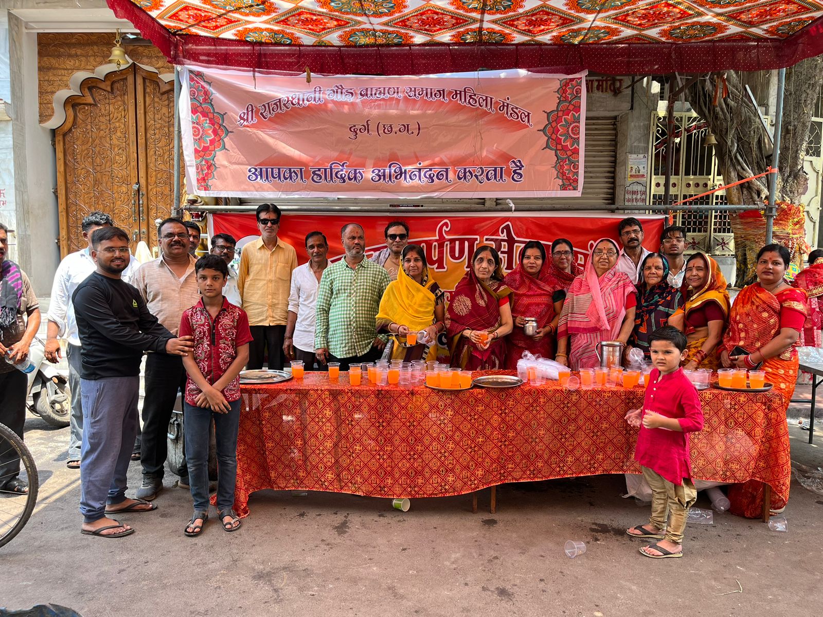 श्री राजस्थानी गौड़ ब्राम्हण समाज की महिलाओं एवं जन समर्पण सेवा सँस्था के सभी सदस्यों ने मिलकर गंजपारा में शरबत आम पना ठंडा पानी का वितरण किया, सभी महिलाओं एवं युवा सदस्यों ने अपने अपने घरों से शक्कर आम पानी एवं अन्य सभी सामग्री अपने अपने घरों से ही लाकर शरबत बनाया, ऑरेंज फेलेवर का शरबत जन समर्पण सेवा सँस्था के सदस्य आशीष गुप्ता ने बनाया एवं आम पना मनोज गुप्ता लाल ने बनाया श्री राजस्थानी गौड़ ब्राम्हण समाज की महिलाओं ने पूरा साथ देते हुए शरबत बनाने एवं वितरण करने में सहयोग किया,