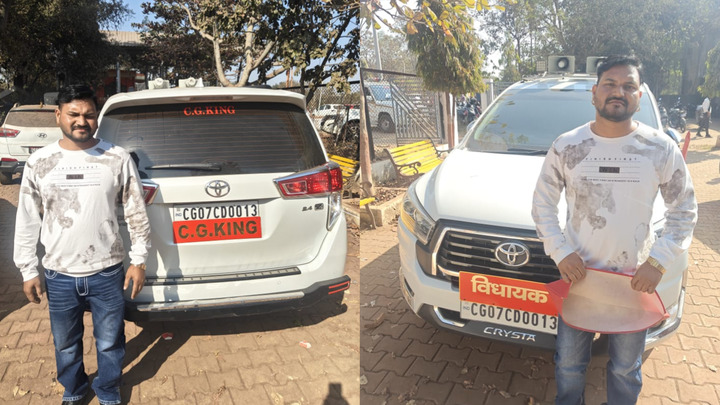 दुर्ग ब्रेकिंग: विधायक की 07 पासिंग गाड़ी पर “CG King” लिखा मिला….तेज रफ्तार और लापरवाही पड़ी भारी