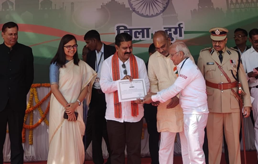दुर्ग/29 जनवरी।समाजसेवा ,पर्यावरण संरक्षण स्वच्छता के क्षेत्र में एक समर्पित कार्यकर्ता के रूप जाने जानेवाले डॉ विश्वनाथ पाणिग्राही गणतंत्र दिवस के अवसर पर दुर्ग जिला मुख्यालय में आयोजित मुख्य कार्यक्रम में मुख्य अतिथि उप मुख्यमंत्री विजय शर्मा के कर कमलों से सम्मानित हुए । डॉ विश्वनाथ पाणिग्राही नगरपालिका निगम दुर्ग के स्वच्छ सर्वेक्षण ब्रांड एंबेसेडर हैं। स्वच्छता के नवाचारी कार्यक्रमों के साथ दुर्ग में सिंगल यूज प्लास्टिक छोड़ो अभियान के लिए विशेष रूप से जाने जाते हैं । सिंगल यूज प्लास्टिक छोड़ो अभियान के लिए डॉ पाणिग्राही ने एक विशेष नारा दिया ” अपने घर से थैला लेकर बाजार चलो ,सिंगल यूज प्लास्टिक छोड़ो । इस नारे का अच्छा प्रतिसाद मिला है । लोग घर से थैला लेकर आने लगे हैं ।डॉ पाणिग्राही ने अपनी एक्टिवा दोपहिया वाहन को भी सिंगल यूज प्लास्टिक छोड़ो नारे से पेंट कर स्वयं की वेशभूषा भी उसी अनुरूप बनाकर जागरूकता के लिए निकलते हैं जो आकर्षण का केंद्र बनाता है। गणतंत्र दिवस पर सम्मान मिलने पर प्रसन्नता का अनुभव करते हुए उन्होंने कलेक्टर सुश्री ऋचा प्रकाश चौधरी , संभाग कमिश्नर सत्यनारायण राठौड़, एस एस पी रामगोपाल गर्ग ,दुर्ग नगर निगम कमिश्नर लोकेश चंद्राकर , एडिशनल कलेक्टर गोकुल रावटे ,अरविंद एक्का , सी ई ओ जिला पंचायत अश्विनी देवांगन ,नगर निगम स्वास्थ्य अधिकारी जावेद अली सहित अधिकारियों का आभार व्यक्त किया है।