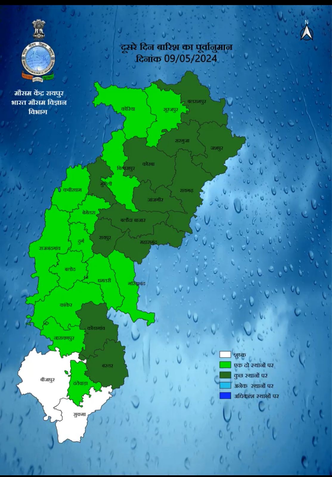 मौसम विभाग के मुताबिक, बालोद, बलौदाबाजार, बेमेतरा, बिलासपुर, धमतरी, दुर्ग, गरियाबंद, गौरेला पेंड्रा मरवाही, जांजगीर-चांपा, जशपुर, कोरबा, मोहला मानपुर अंबागढ़ चौकी, रायगढ़, रायपुर, राजनांदगांव, सक्ती, सारंगढ़ बिलाईगढ़, सरगुजा में कुछ स्थानों पर तेज हवा के साथ आंधी और बारिश होने की संभावना है. मौसम विभाग का कहना है कि अगले 24 घंटे तक मौसम ऐसे ही रहेगा.