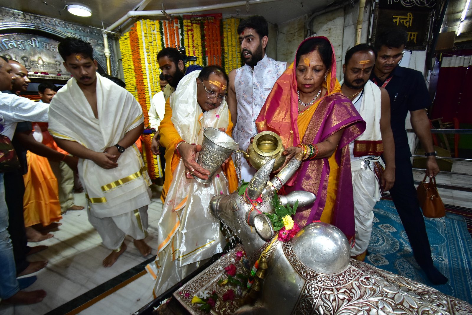 मुख्यमंत्री श्री विष्णु देव साय पवित्र सावन मास के अंतिम दिवस, पांचवें सोमवार को आज बाबा महाकाल की नगरी उज्जैन में सपरिवार श्री महाकालेश्वर के दर्शन किए। मुख्यमंत्री श्री साय ने पवित्र ज्योतिर्लिंग की पूजा-अर्चना कर आशीर्वाद लिया एवं समस्त प्रदेशवासियों के सुख-समृद्धि और खुशहाली की कामना की।