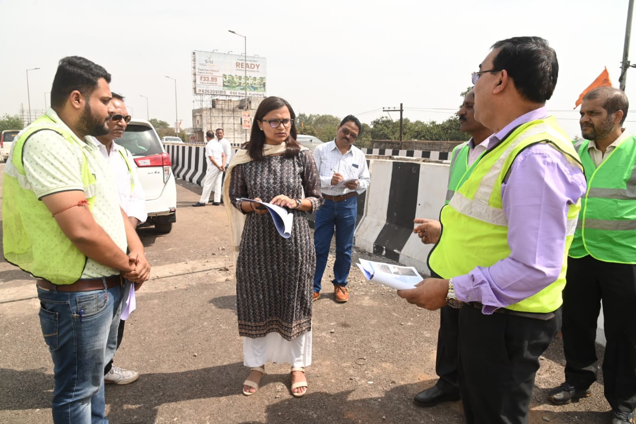 दुर्ग-रायपुर राष्ट्रीय राजमार्ग में निर्माणाधीन फ्लाईओवर का कलेक्टर ने किया निरीक्षण