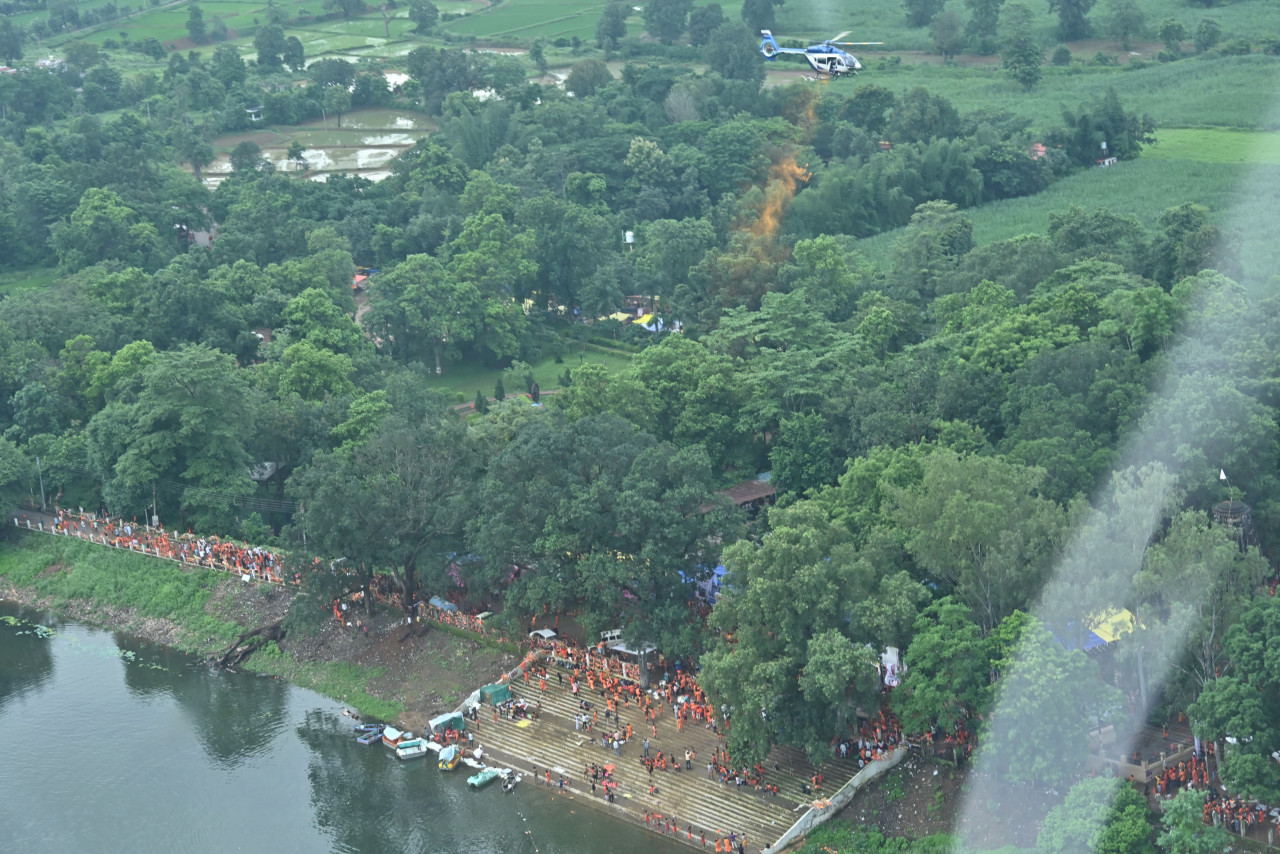 मुख्यमंत्री श्री विष्णुदेव साय ने आज प्रदेश के प्राचीन, पुरातात्विक, धार्मिक और ऐतिहासिक स्थल बाबा भोरमदेव मंदिर में पवित्र सावन मास के अवसर पर हजारों कावड़ियों का हेलीकॉप्टर से पुष्प वर्षा कर भव्य स्वागत किया। इस ऐतिहासिक आयोजन में मुख्यमंत्री श्री साय ने हर-हर महादेव और बोल बम के जयघोष के साथ कावड़ियों और श्रद्धालुओं का स्वागत किया और उनका हौसला बढ़ाया। मुख्यमंत्री के साथ उपमुख्यमंत्री श्री विजय शर्मा ने भी कावड़ियों का अभिनंदन किया।