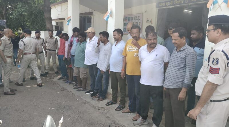 नाम आरोपीगण 1. पंकज शर्मा पिता राजकुमार शर्मा उम्र 34 वर्ष निवासी संगम चौक चरोदा बस्ती, 2. आकाश यादव पिता रामप्रसाद उम्र 33 वर्ष निवासी प्रगति नगर चरोदा, 3. वेंकट रमना पिता नरसिम्हा उम्र 48 वर्ष निवासी जोन 01, रेल्वे कालोनी चरोदा, 4. बी. नारायण पिता बी. गणेश उम्र 50 वर्ष निवासी जोन 01, रेल्वे कालोनी चरोदा, 5. अनिल वैध पिता मनीराम वैध उम्र 40 वर्ष निवासी समता कालोनी चरोदा, 6. गणेश प्रसाद पिता केसरी प्रसाद उम्र 46 वर्ष निवासी इंदिरा नगर चरोदा, 7. शैलेष यादव पिता संतराम यादव उम्र 33 वर्ष निवासी प्रगति नगर जोन 01 चरोदा, 8. उस्मान अली पिता मुस्ताक अली उम्र 42 वर्ष निवासी आदर्श नगर चरोदा, 9. संजीव कुमार महतो पिता रघुवीर महतो उम्र 40 वर्ष निवासी गणेश चौक चरोदा, 10. तुषार सावंत पिता एम. सावंत उम्र 58 वर्ष निवासी पदुमनगर भिलाई 03, 11.ए. सुधाकर पिता ए. राजकुमार उम्र 38 वर्ष निवासी इंदिरा नगर चरोदा, 12. टी. रामेश्वर राव पिता स्व. टी. भगवान उम्र 49 वर्ष निवासी दादर रोड ओमन ट्रेडर्स के बाजू चरोदा, 13. नीलकंठ साहू पिता पुषउ राम साहू उम्र 55 वर्ष निवासी नूतन चौक भिलाई 03, 14. शैलेन्द्र खरे पिता बी. एल. खरे उम्र 48 वर्षे निवासी इंदिरा नगर चरोदा, 15.एम. जानी पिता एम. जोसफ उम्र 32 वर्ष निवासी जोन 01 चरोदा, 16. एम. नरेश पिता एम. रामलू उम्र 48 वर्ष निवासी इंदिरा नगर चरोदा