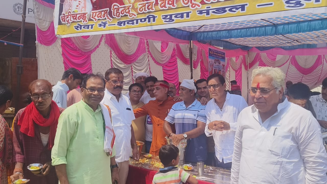 अपने दौरे से समय निकालकर के राजेन्द्र साहू आज सिंघुड़ी सेवा समिति द्वारा सिंधी कॉलोनी दुर्ग में चेड़ीचंड पर्व के अवसर पर आयोजित आम भंडारा एवं बाबा झुलेलाल की पूजा में शामिल हुए