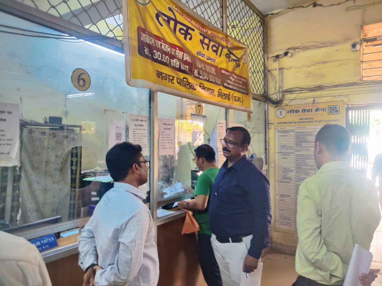 दुर्ग 11 मार्च 2024/ कलेक्टर सुश्री ऋचा प्रकाश चौधरी द्वारा लोक सेवा केंद्रों की आकस्मिक जांच किए जाने के निर्देशानुसार आज दुर्ग एसडीएम मुकेश रावटे और तहसीलदार प्रफुल्ल कुमार गुप्ता नें अलग अलग स्थानों में संचालित लोक सेवा केंद्रों की आकस्मिक जांच की। एसडीएम मुकेश रावटे ने सुपेला स्थित लोक सेवा केंद्र और तहसीलदार प्रफुल्ल गुप्ता ने तहसील ऑफिस दुर्ग स्थित लोक सेवा केंद्र की जांच की। तहसीलदार प्रफुल्ल कुमार गुप्ता ने तहसील कार्यालय स्थित लोक सेवा केंद्र में अपनी पहचान छुपाकर आवेदक बनकर निवासी प्रमाण पत्र बनाने आवेदन पेश किया और उसमें लगने वाले दस्तावेजों और लगने वाले शुल्क के संबंध में पूछताछ किया। संचालक कौशिल्या और राकेश यादव ने निवास, जाती, इनकम सेटिफिकेट में लगने वाले दस्तावेजों के बारे में सिलसिलेवार जानकारी दी। निर्धारित शुल्क के बारे में भी जानकारी उनके द्वारा दी गई। लोक सेवा केंद्र संचालक, दुर्ग एसडीएम मुकेश रावटे और तहसीलदार प्रफुल्ल कुमार गुप्ता को नहीं पहचान पाए। जांच में लोक सेवा केंद्र में सेवाओं की सूची और निर्धारित शुल्क की जानकारी प्रदर्शित होना पाया गया। एसडीएम और तहसीलदार ने लोक सेवा केंद्र संचालकों को केंद्र में आने वाले आवेदकों से अच्छा व्यवहार रखने और आवश्यक दस्तावेज ही लगवाने हिदायत दी। अनावश्यक रूप से अनुपयोगी दस्तावेज न लगवाने की सलाह दी।