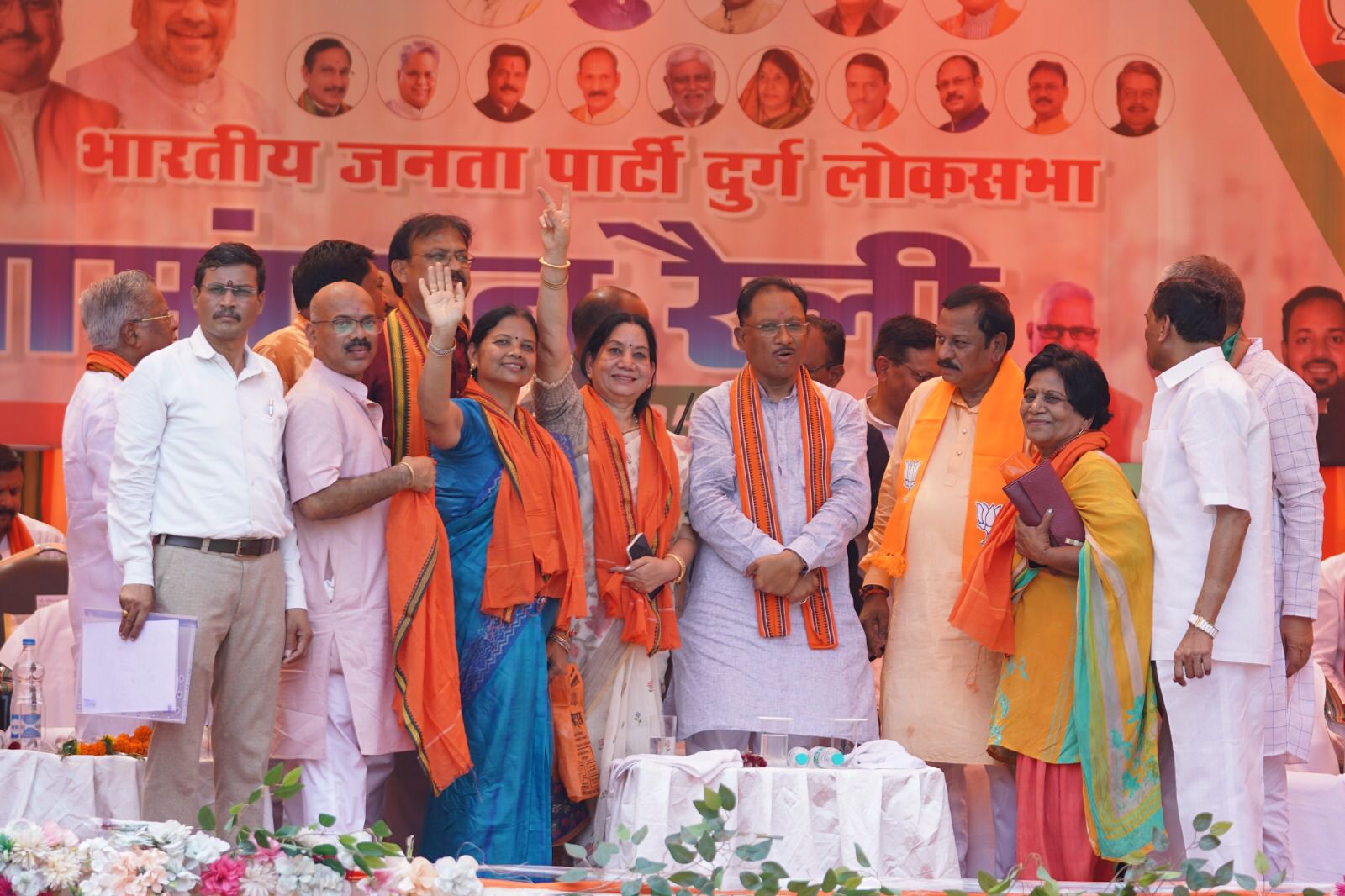 दुर्ग लोकसभा से भाजपा के प्रत्याशी विजय बघेल के नामांकन रैली में शामिल होने आज प्रदेश के मुख्यमंत्री विष्णुदेव साय उप मुख्यमंत्री अरुण साव सहित अनेक नेतागण पहुंचे इससे पूर्व रविशंकर स्टेडियम स्थित मानस भवन प्रांगण में एक बड़ी सभा हुई जिसमे मुख्यमंत्री विष्णुदेव साय ने संबोधित कर चुनावी प्रक्रिया का बिगुल फूंकते हुए जोरदार हुंकार भर देश में फिर से नरेंद्र मोदी जी के नेतृत्व में भाजपा सरकार बनाने दुर्ग से विजय बघेल के लिए आशीर्वाद मांगा तपश्चात दुर्ग भिलाई बेमेतरा जिले से पहुंचे हजारों कार्यकर्ताओ के साथ डीजे पंथी नृत्य व बाजे गाजे के साथ सीएम विष्णु देव खुली रथ में सवार होकर कुछ दूर चल कर मतदाताओं से भाजपा के पक्ष में समर्थन मांगा इस दौरान रथ में उप मुख्यमंत्री अरुण साव प्रत्याशी विजय बघेल सहित अनेक नेता सवार थे घोषित कार्यक्रम के लोकसभा प्रत्याशी विजय बघेल ने सुबह 10.55 बजे शुभ मूहर्त में अपना पहला पर्चा दाखिल किया जिसमे प्रस्तावक भाजपा नेता व साहू समाज से दीपक साहू व समर्थक सतनामी समाज के नेता पद्मश्री राधेश्याम बारले बने।इस अवसर सभा व रैली में उप मुख्यमंत्री अरुण साव,प्रत्याशी विजय बघेल,लोकसभा प्रभारी चंदूलाल साहू सह प्रभारी राजीव अग्रवाल लोकसभा संयोजक अवधेश चंदेल सहसंयोजक प्रीतपाल बेलचंदन विधायकगण डोमनलाल कोर्सेवाड़ा ललित चंद्राकर गजेंद्र यादव ईश्वरी साहू दीपेश साहू रिकेश सेन जिला अध्यक्षगण जितेंद्र वर्मा ओम प्रकाश जोशी महेश वर्मा पूर्व विधायक श्रीमती रमशिला साहू लाभचंद बाफना जागेश्वर साहू सांवला राम डाहरे बालमुकंद देवांगन प्रदेश भाजयुमो अध्यक्ष रवि भगत सहित अनेक नेतागणों मौजूद थे इस दौरान मोदी जी की कार्यशैली व भाजपा के विचारधार से प्रभावित होकर पूर्व मुख्यमंत्री भूपेश बघेल की भाभी सीमा बघेल वायुसेना के रिटायर्ड कर्नल विपुल साहू पाटन विधानसभा से जोगी कांग्रेस प्रत्याशी रहे शकुंतला साहू सहित कई लोग भाजपा में शामिल हुए।