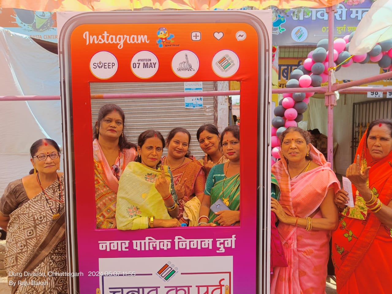 दुर्ग, 07 मई 2024/ नगर निगम सीमा क्षेत्र के विभिन्न मतदान केंद्रों में बड़ी संख्या में युवा मतदाताओं ने भाग लिया। इनमें से कई मतदाता ऐसे हैं जिन्होंने पहली बार अपने मताधिकार का उपयोग किया।मतदान कर युवाओं एवं महिलाओ ने मतदान केंद्रों में बने सेल्फी प्वाइंट्स पर फोटो खिचवाई एवं देश के प्रति अपनी इस जिम्मेदारी को पूरा करने की खुशी जाहिर की।