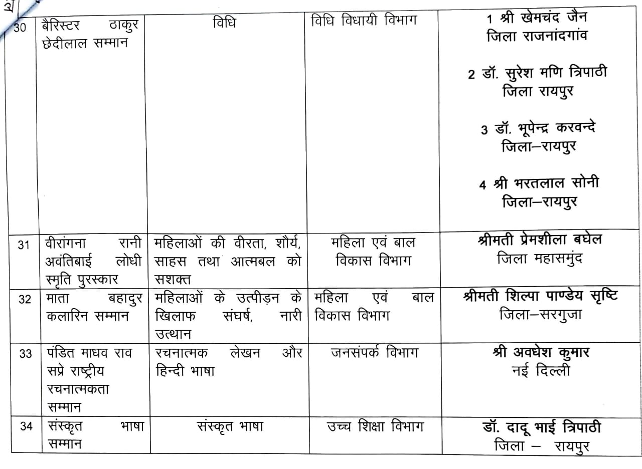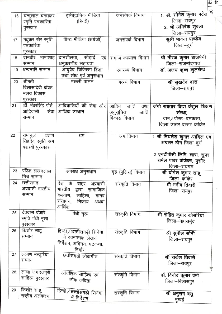 छत्तीसगढ़ राज्य अलंकरण पुरस्कारों की घोषणा..फिल्म निर्देशक अनुराग बसु सहित दुर्ग के इन्हें भी मिलेगा सम्मान.देखें लिस्ट
