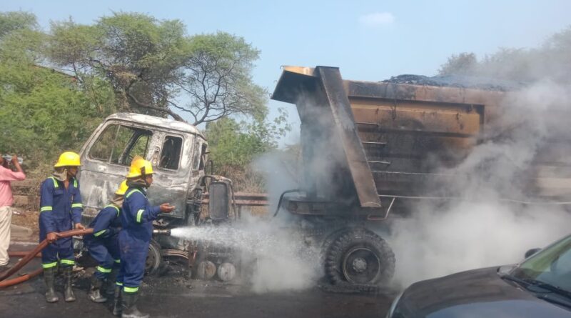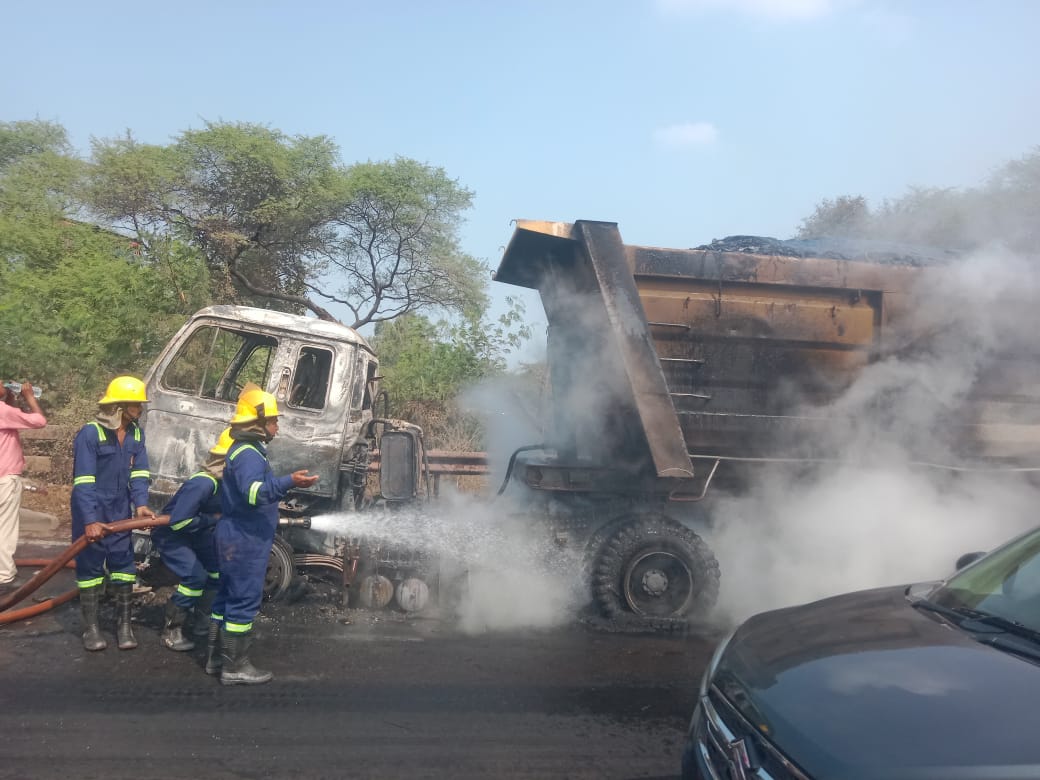 कोयले से भरे ट्रक में लगी आग, अग्निशमन दल ने समय रहते पाया काबू