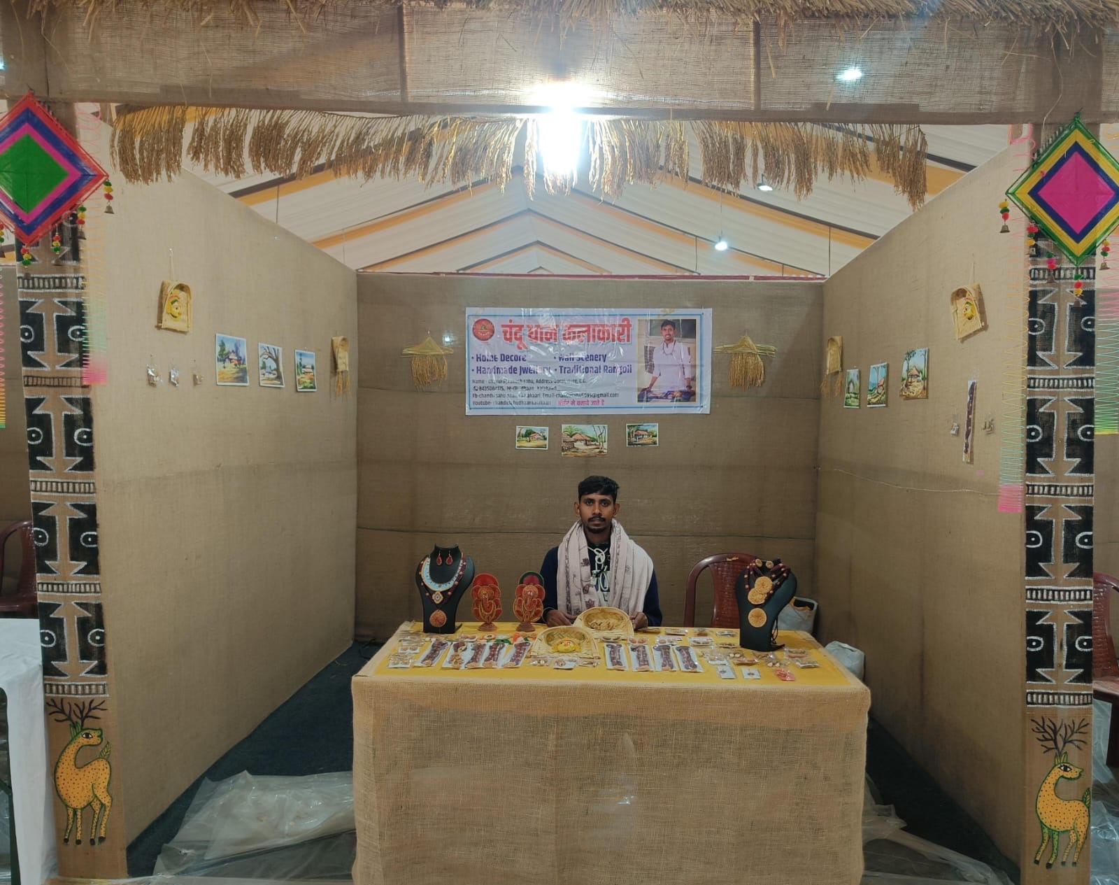 दुर्ग के धान कलाकार चंद्रप्रकाश ने प्रयागराज में हो रहे महाकुंभ में लगाई प्रदर्शनी