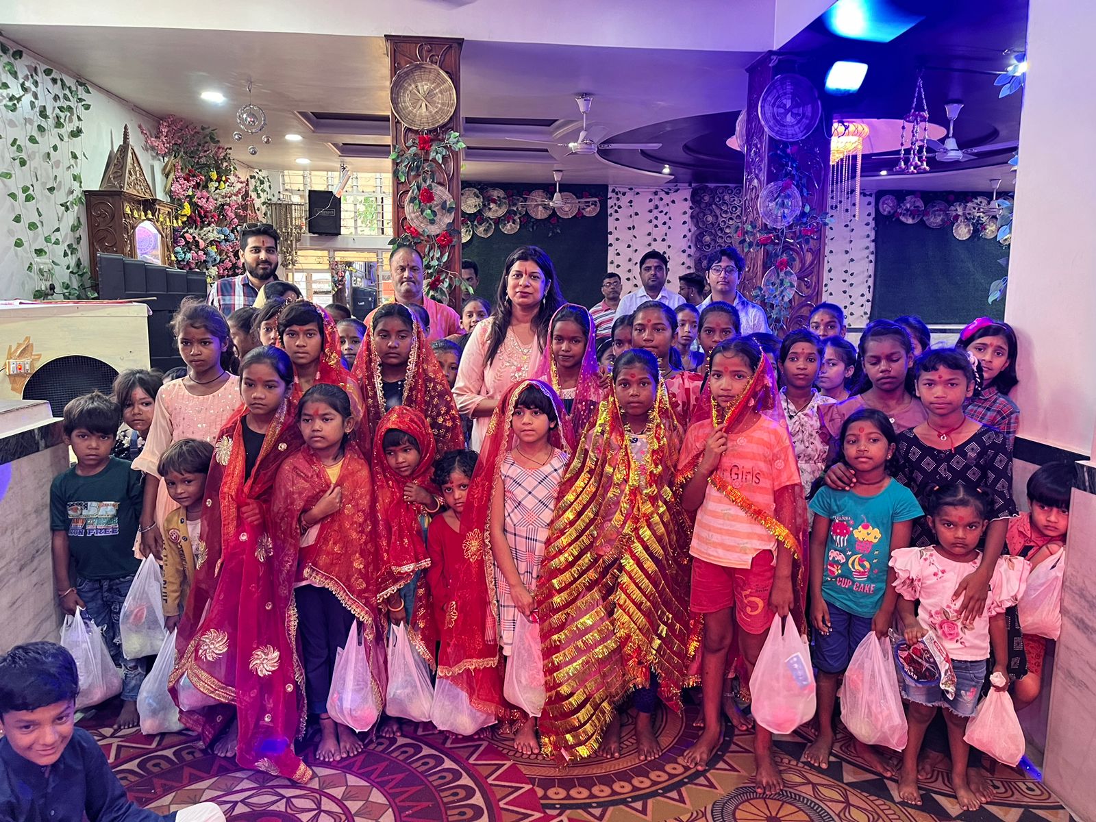 समित्ति के राहुल शर्मा ने बताया कि पंडाल में रोजाना दोपहर 12 बजे कन्या पूजन किया जा रहा है। जिसमें सरकारी स्कूलों में पढऩे वाली बेटियों को यहां बुलाया जा रहा है। और मंदिर परिसर में रोजाना दोपहर 12 बजे कन्या पूजन किया जा रहा है। जिसमें सरकारी स्कूलों में पढऩे वाली बेटियों को यहां बुलाया जा रहा है। इन बेटियों का पूजन कर उन्हें भेंट में शिक्षण सामग्री जैसे पेंसिल, रबर, शॉपनर, कॉपी, पेन, बॉक्स, फल, आदि दिए जा रहे हैं ताकि वे शिक्षा की ओर बढ़ें और स्वस्थ रहे। समिति के लोगों का मानना है कि बेटियां अगर शिक्षित होंगी तो समाज भी शिक्षित होगा।