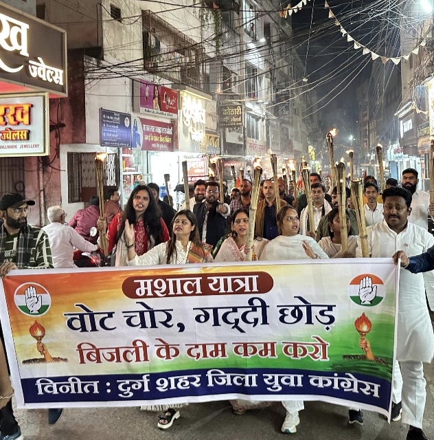 दुर्ग ब्रेकिंग: बिजली बिल की बढ़ोतरी को लेकर दुर्ग शहर जिला युवा कांग्रेस ने निकाली भव्य मशाल यात्रा
