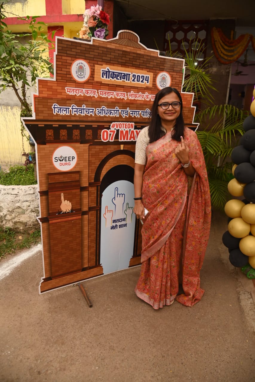 दुर्ग, 7 मई 2024/कलेक्टर एवं जिला निर्वाचन अधिकारी सुश्री ऋचा प्रकाश चौधरी एवं आईजी श्री रामगोपाल गर्ग ने आज सवेरे 7 बजे पॉलीटेक्निक कॉलेज पहुंचकर अपने मताधिकार का प्रयोग किया। उन्होंने सभी मतदाताओं से अपने मताधिकार का प्रयोग करने की अपील की। कलेक्टर ने मतदान करने के पश्चात सेल्फी जोन में जाकर सेल्फी ली। साथ ही आईजी श्री रामगोपाल गर्ग ने भी सपत्नीक वोटिंग करने के बाद पत्नी के साथ सेल्फी जोन में सेल्फी ली।