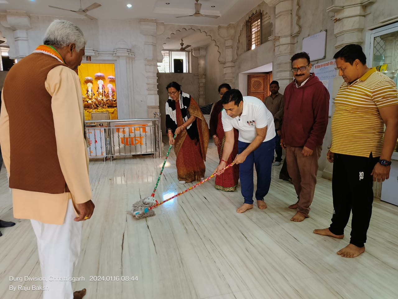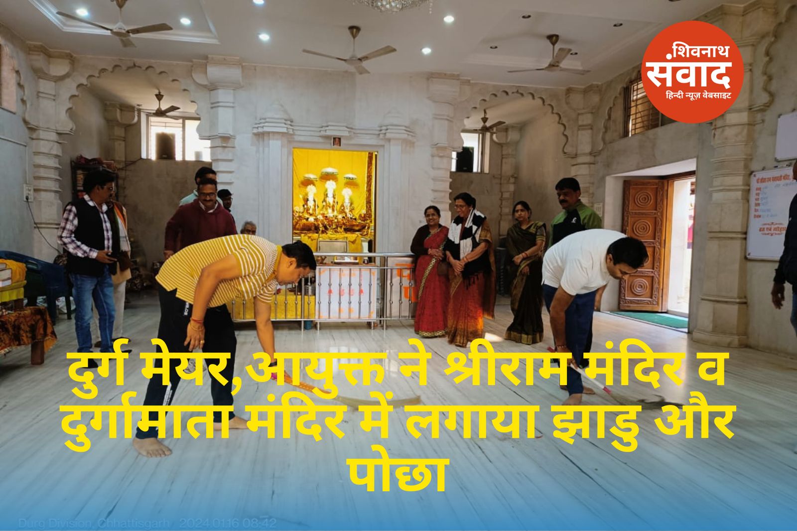 दुर्ग ब्रेकिंग: महापौर एवं आयुक्त ने श्रीराम मंदिर व दुर्गामाता मंदिर में लगाया झाडु और पोछा -भगवान राम की दुर्ग वासियों पर अपार कृपा: बाकलीवाल
