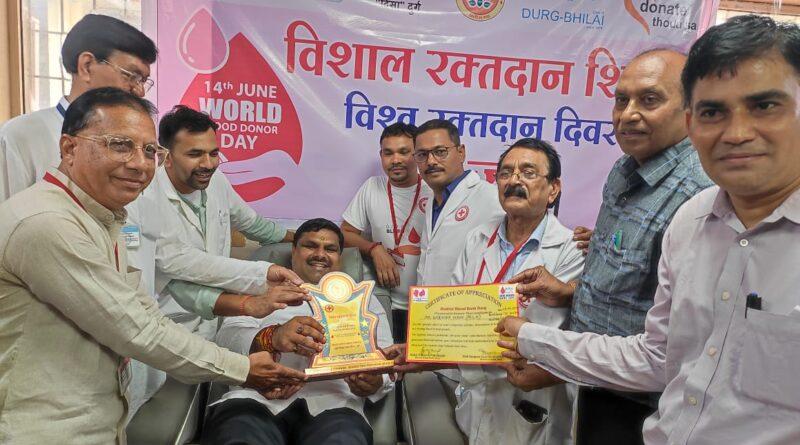 दुर्ग, 14 जून 2024/ प्रतिवर्ष की तरह इस वर्ष भी 14 जून 2024 को विश्व रक्तदाता दिवस ब्लड बैंक जिला चिकित्सालय दुर्ग में मनाया गया। इस वर्ष रक्तदाता दिवस का स्लोगन ’’20 यीयर्स ऑफ गिविंग थैंक यू, ब्लड डोनर्स‘‘ है।