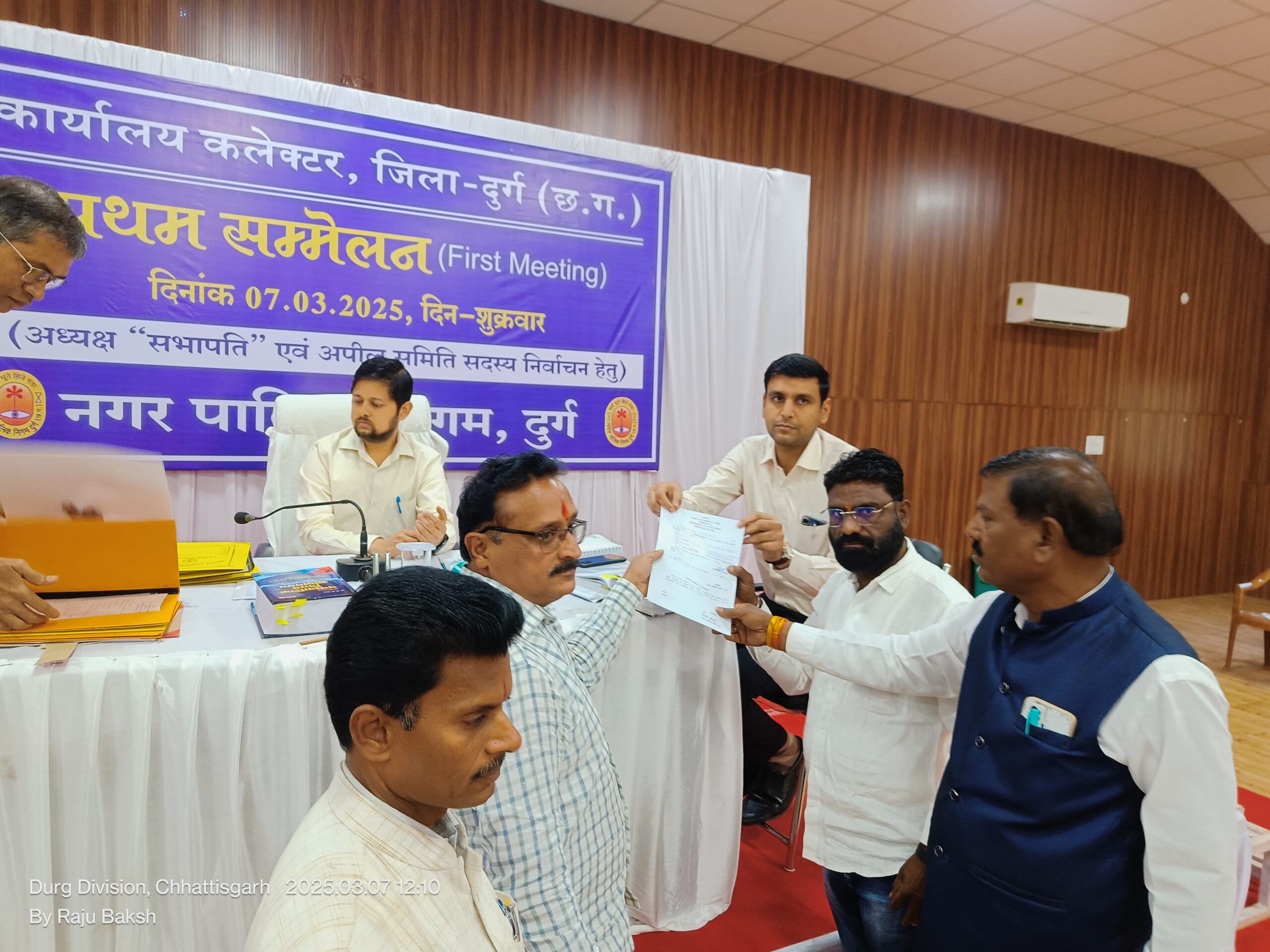 दुर्ग। दुर्ग निगम में सभापति पद के लिए चुनाव की प्रक्रिया शुरू हो गई है। भाजपा से सीनियर पार्षद श्याम शर्मा और कां्रेस से भास्कर कुंडले को उम्मीदवार बनाया गया है। दोनों उम्मीदवारों ने नामांकन भर दिया है। सभापति पद पर भाजपा की जीत तय है। निगम में भाजपा के 40 और कांग्रेस के 12 पार्षद है |8 निर्दलीय पार्षद भी चुनकर आए हैं।