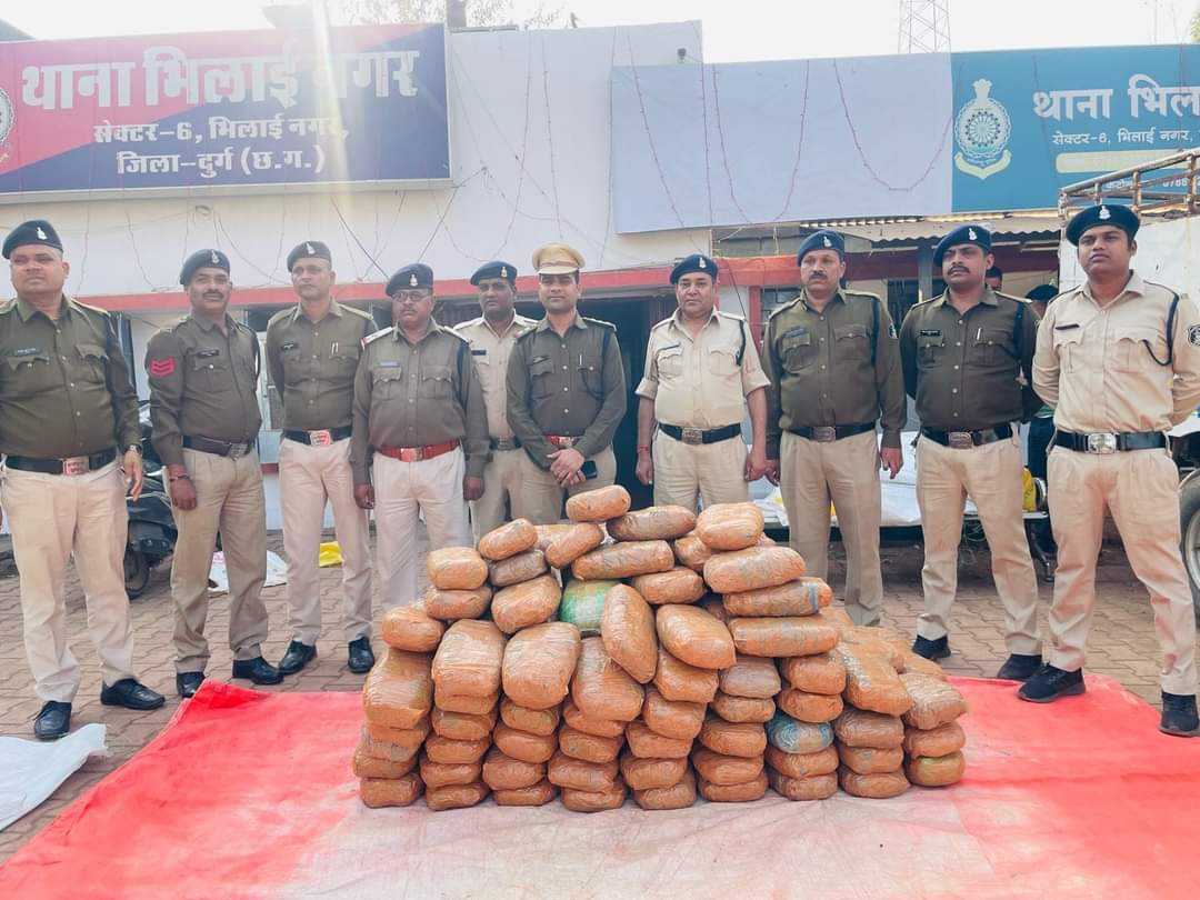 श्री जितेन्द्र शुक्ला, भापुसे, पुलिस अधीक्षक, जिला दुर्ग व्दारा नशे के विरूद्ध अभियान चलाकर कार्यवाही किये जाने हेतु निर्देशित किये जाने पर, श्री अभिषेक झा, अतिरिक्त पुलिस अधीक्षक, शहर, दुर्ग के मार्गदर्शन में नशे का अवैध कारोबार करने वालों की पतासाजी एवं पेट्रोलिंग के दौरान दिनांक 08.09.02.2024 की दरम्यानी रात्रि थाना भिलाई नगर को सूचना प्राप्त हुयी कि उड़िसा पासिंग पिकअप वाहन कमांक-ओडी 14 व्ही/4975 के अंदर सब्जियों के नीचे गांजा रखकर परिवहन किया जा रहा है, पिकअप वाहन सेक्टर-7 भिलाई के पास है। इस सूचना पर तत्काल थाना भिलाई नगर पेट्रोलिंग स्टाफ व्दारा प्राप्त सूचना के आधार पर सेक्टर-7 सड़क-24 के पहुंचकर पिकअप वाहन नजर आने पर उसका पीछा किया गया। पुलिस व्दारा पीछा करते देख पिकअप वाहन का चालक वाहन को रोककर अंधेरे का फायदा उठाकर फरार है। वाहन को चेक किये जाने पर वाहन के अंदर सब्जियों के नीचे 07 सफेद रंग के प्लास्टिक के बोरी में मादक पदार्थ गांजा मिला, गांजा एवं वाहन को मौके पर ही नियमानुसार जप्त किया गया । वाहन से कुल 01 क्विंटल, 70 कि., 500 ग्राम गांजा कीमती 17.5 लाख रूपये एवं पिकअप वाहन 05 लाख रूपये कुल कीमती 22.05 लाख को जप्त किया गया है । वाहन मालिक एवं आरोपी की पतासाजी की जा रही है। सूखे नशे के विरूद्ध दुर्ग पुलिस की लगातार कार्यवाही जारी है।