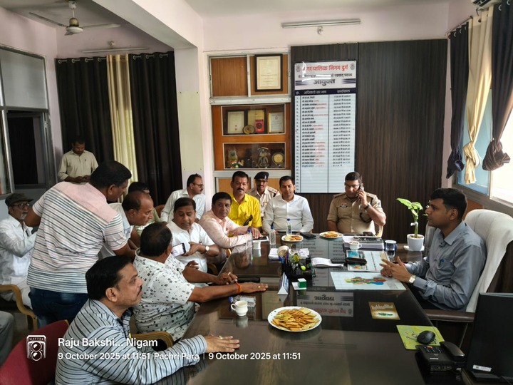 बुधवार को नगर निगम कार्यालय में आयोजित संयुक्त बैठक में निगम आयुक्त सुमित अग्रवाल, एडिशनल एसपी सुखनंद राठौर और एडीएम अभिषेक अग्रवाल सहित छत्तीसगढ़ चेंबर ऑफ कॉमर्स के पदाधिकारी, बाजार अधिकारी एवं नगर निगम अमला मौजूद रहा।