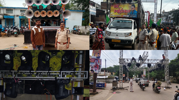 दुर्ग पुलिस द्वारा डी.जे. संचालकों का बैठक लिया जाकर आगामी त्यौहारों हारों एवं धार्मिक कार्यक्रमों को दृष्टिगत रखते हुए डीजे बजाने के संबंध संबंध में आवश्यक निर्देश दिया गया था किन्तु कुछ डीजे संचालको के द्वारा नियमो का पालन नहीं करते हुये गणेश विसर्जन कार्यक्रम के दौरान अपने वाहन में साउंड सेटअप लगाकर तेज आवाज में डीजे बजा रहे थे जिस पर कुल 4 डीजे संचालको के विरूद्ध तथा आम रास्त पर लाईट ट्रस्ट सेंट लगाकर आम रास्ता को बाधित करने पर लाईट ट्रस्ट सेट संचालक एवं गणेशोत्सव समिति के सदस्य के विरूद्ध विभिन्न थाना क्षेत्रो में कोलाहल अधिनियम तथा धारा 285 बीएनएस के अंतर्गत किया गया कार्यवाही।