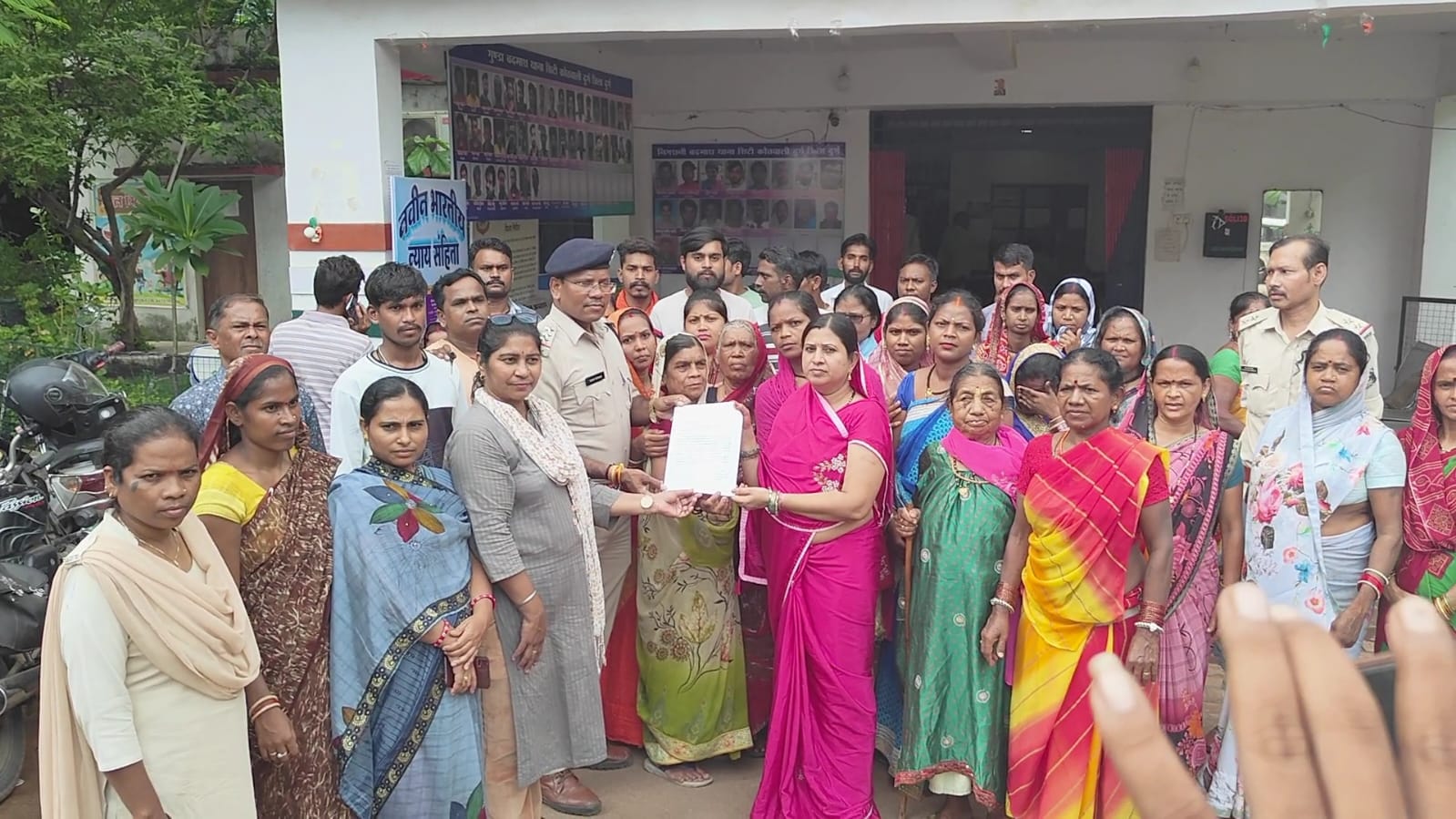 उल्लेखनीय है की गया नगर वार्ड 4 मुक्तिधाम क्षेत्र निवासी श्रीमती मंजू निर्मलकर के साथ बुधवार रात मुहल्ले में आए दिन उपद्रव मचाने वाले सचिन नागरे नामक युवक द्वारा मामूली बात को लेकर विवाद कर हुड़दंग मचाया गया व उक्त महिला के चरित्र पर झूठा लांछन लगाते हुए उन्हें व परिवार वाले को जान से मारने की धमकी दिया था जिससे आहत महिला ने दूसरे दिन अर्धरात्रि को अपने घर में फांसी लगाकर आत्महत्या कर लिया जिससे गुस्साए वार्ड की महिलाओं व युवाओं ने आज उनके पति डोमन निर्मलकर व परिवार के साथ थाने में टीआई यादव के समक्ष पुलिस व्यवस्था के खिलाफ जमकर आक्रोश प्रकट किया और मुहल्ले में बढ़ रही गुंडागर्दी व अपराधी किस्म के लोगो पर अंकुश लगाने की मांग किया गया इस दौरान महिलाओं ने बताया कि वार्ड के गयानगर,राजीव नगर क्षेत्र में लगातार अनेक अपराधिक घटनाएं हो रही है वार्ड के मुक्तिधाम गार्डन,राजीव नगर,सुलभ शौचालय आंगनबाड़ी के केंद्र के पीछे आए दिन देर रात तक जुवांडियो व शराबियो का जमवाड़ा रहता है और रात भर उपद्रव मचाते रहते है और मना करने पर मारपीट व पथराव करते है तथा पुलिस में शिकायत करने पर भी ठोस कार्यवाही नही होने से अपराधी तत्वों के हौसले बुलंद होता जा रहा है जिसका नतीजा है एक दिन पूर्व दो बच्चियों के माता को लोक लाज के भय से आत्महत्या जैसे कदम उठाना पड़ा इस तरह से ही रही घटनाओं से मुहल्ले में भय का वातावरण बन गया है जिस पर रोक लगाना आवश्यक है ।थाना प्रभारी को ज्ञापन सौंपने वालो में वार्ड पार्षद लीना देवांगन,अनीता ठाकुर,सरस्वती शर्मा,भुनेश्वरी ठाकुर,सोहद्रा निर्मलकर,राधा चंद्राकर,अमरीका निर्मलकर, भाना बाई साहू, दउवा राजपूत,केदार ठाकुर,राधामणि,शशिरेखा,मुकेश राजपूत,पिंटू निषाद,रमा निर्मलकर,बुधिया बाई,रानी यादव,विक्रम सिंह,देव सिंह,राजेंद्र यादव बलराम मंडावी अंजनी बाई सहित बड़ी संख्या में महिलाए उपस्थित थी।