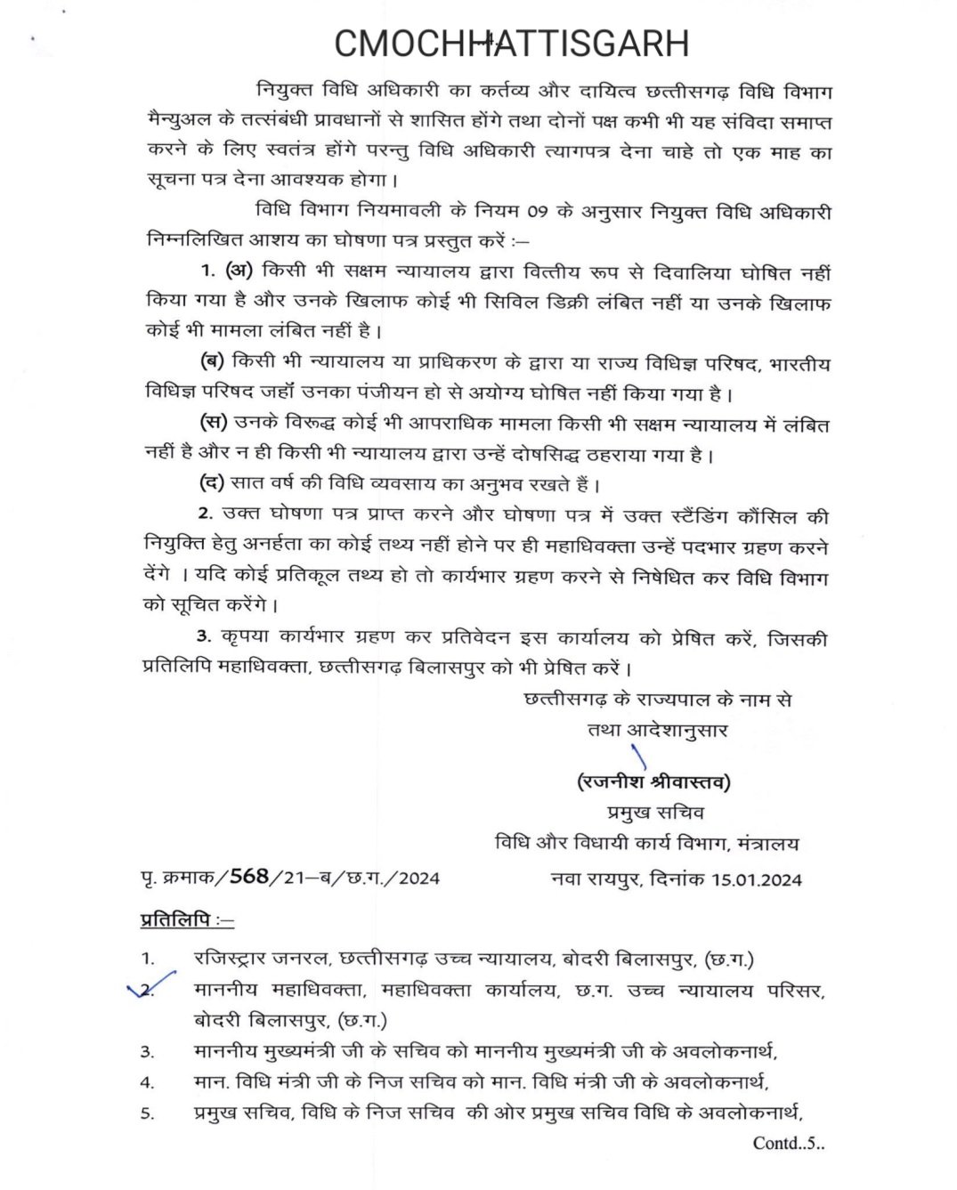 CG BREAKING: विधि विभाग ने महाधिवक्ता समेत 64 अधिवक्ताओं की नियुक्ति का दिया आदेश, देखें लिस्ट