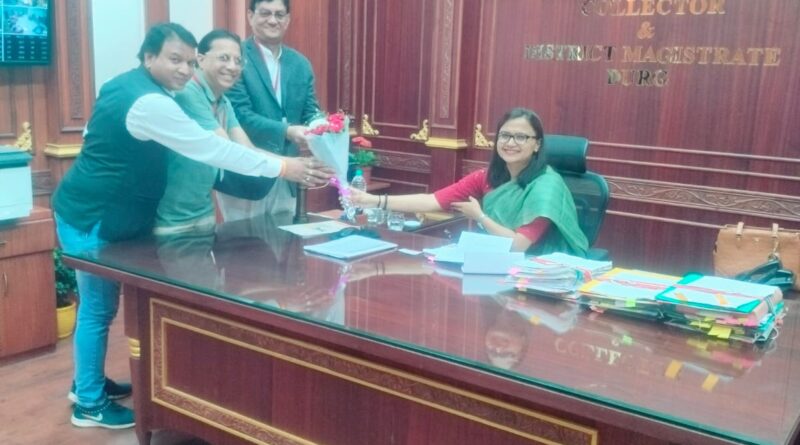 दुर्ग जिला चिकित्सालय जीवन दीप समिति के सदस्यों नें नव नियुक्त कलेक्टर सुश्री रिचा प्रकाश चौधरी से सौजन्य भेंट
