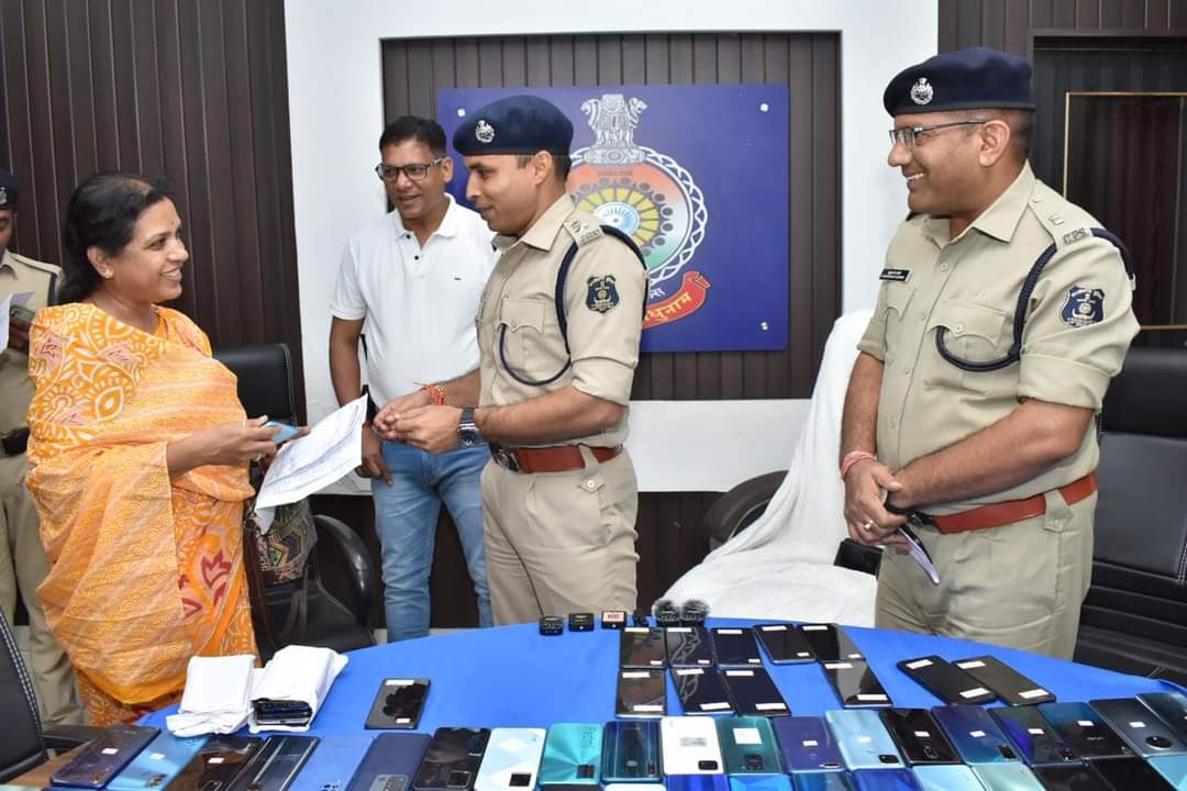 जिले में गुम मोबाईल के संबंध में लगातार आवेदकों द्वारा रिपोर्ट थानो में दर्ज कराई जा रही है, जिस पर पुलिस अधीक्षक, दुर्ग श्री जितेन्द्र शुक्ला (भा.पु.से) व्दारा गुम मोबाईलों की पतासाजी कर आवेदकों के सुपुर्द करने हेतु निर्देश प्राप्त है। अति. पुलिस अधीक्षक (अपराध) सुश्री ऋचा मिश्रा, अति. पुलिस अधीक्षक (शहर) श्री सुखनंदन राठौर, उप पुलिस अधीक्षक (अपराध) श्री हेमप्रकाश नायक के मार्गदर्शन में प्रभारी एन्टी क्राईम एण्ड सायबर यूनिट दुर्ग निरीक्षक कपिल देव पाण्डेय एवं थाना प्रभारी खुर्सीपार के नेतृत्व में एन्टी क्राईम एण्ड सायबर यूनिट को गुम हुये मोबाईलों को खोजकर संबंधित मोबाईल स्वामियों को वितरण करने हेतु लगाया गया। वरिष्ठ अधिकारियों के निर्देशानुसार वर्ष 2023-2024 के गुम हुये मोबाईलों से संबंधित आवेदन पत्रों के आधार पर अभियान चला कर अथक मेहनत एवं लगन से एन्टी क्राईम एण्ड सायबर यूनिट टीम द्वारा दुर्ग, भिलाई, राजनांदगाँव, बालोद, बेमेतरा एवं रायपुर क्षेत्रों में चल रहे कुल 170 नग विभिन्न कंपनियों के मोबाईलों, जुमला कीमती तकरीबन 35 लाख रूपये का बरामद किया गया, जिसे संबंधित आवेदकों को विधिवत वितरण किया जा रहा है। उक्त कार्यवाही में एन्टी क्राईम एण्ड सायबर यूनिट टीम की उल्लेखनीय भूमिका रही। दुर्ग पुलिस के सोशल एकाउन्ट (फेसबुक, इंस्टाग्राम, ट्वीटर) पर बरामद मोबाईल के IMEI नंबरों की लिस्ट अपलोड की जायेगी, जिससे मिलान कर संबंधित मोबाईल स्वामी एन्टी क्राईम एण्ड सायबर यूनिट, कार्यालय सेक्टर 3 भिलाई से अपना मोबाईल प्राप्त कर सकते है।