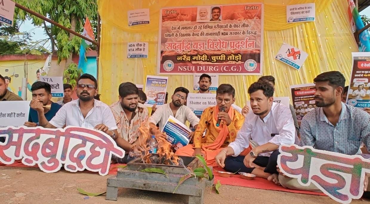 NSUI ने केंद्र सरकार के लिए किया सद्बुद्धि यज्ञ – नरेंद्र मोदी चुप्पी तोड़ो, युवाओं को न्याय दो- सोनू साहू