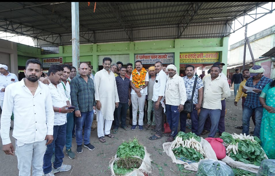 दुर्ग।। कांग्रेस प्रत्याशी श्री राजेंद्र साहू सुबह 7 बजे थोक फल सब्जी मंडी दुर्ग में सब्ज़ी उत्पादक छोटे किसानों और व्यापारी रेजा हमाल के बीच पहुंचे । व्यापारियों ने ढोल पटाको से जोरदार स्वागत किया गया उसके बाद मंडी में अपने उत्पाद लाए किसानों ने भी