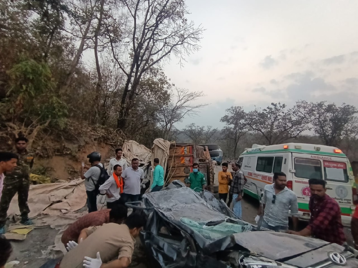 CG BREAKING: सड़क हादसे में कार सवार तीन लोगों की कार में दबकर मौत