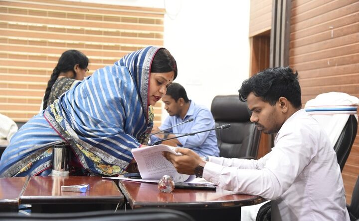दुर्ग, 8 जुलाई 2025/ जिला कार्यालय के सभाकक्ष में कलेक्टर श्री अभिजीत सिंह के निर्देशानुसार डिप्टी कलेक्टर श्री उत्तम धु्रव एवं श्री हितेश पिस्दा ने साप्ताहिक जनदर्शन कार्यक्रम में पहुंचे जनसामान्य लोगों से मुलाकात कर उनकी समस्याएं सुनी। उन्होंने जनदर्शन में पहुंचे सभी लोगों की समस्याओं को गंभीरता से सुना और समुचित समाधान एवं निराकरण करने संबंधित विभागों को शीघ्र कार्यवाही कर आवश्यक पहल करने को कहा। जनदर्शन के दौरान नगर निगम, समाज कल्याण, खाद्य विभाग एवं जिला पंचायत के अधिकारी उपस्थित थे। जनदर्शन में अवैध कब्जा, आवासीय पट्टा, प्रधानमंत्री आवास, भूमि सीमांकन कराने, आर्थिक सहायता राशि दिलाने सहित विभिन्न मांगों एवं समस्याओं से संबंधित आज 80 आवेदन प्राप्त हुए।