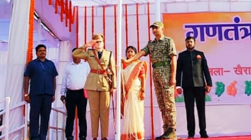 शिवनाथ संवाद।। खैरागढ़-छुईखदान-गंडई जिला के प्रथम गणतंत्र दिवस का कार्यक्रम जिला मुख्यालय खैरागढ़ के ऐतिहासिक राजा फतेह सिंह खेल मैदान में सम्पन्न हुआ। इस अवसर पर मुख्य अतिथि विधायक श्रीमती यशोदा वर्मा ने ध्वजारोहण किया। मुख्य अतिथि ने परेड की सलामी ली और मुख्यमंत्री का जनता के नाम संदेश का वाचन किया। समारोह में जिला के कलेक्टर श्री जगदीश सोनकर व पुलिस अधीक्षक सुश्री अंकिता शर्मा विशेष रूप से उपस्थित थे।
